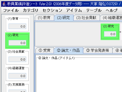 入力およびインポートを行いたいカテゴリおよびセクションをシート上から選択します.