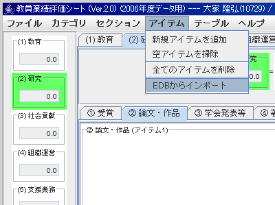 EDB から情報のインポートが可能な場合は「アイテム」のメニュー内の「EDBからインポート」が選択可能になります.