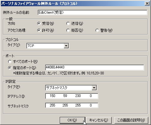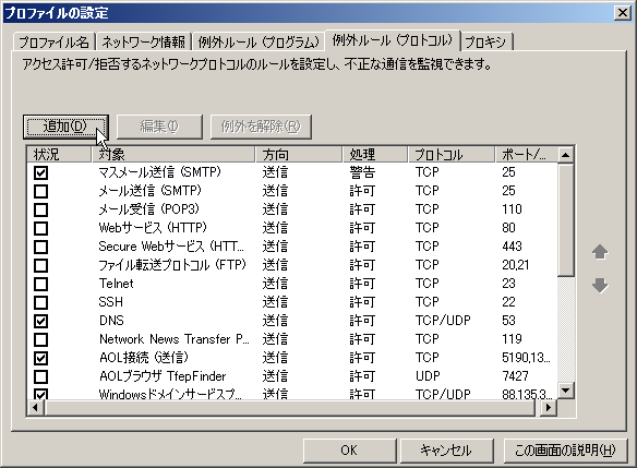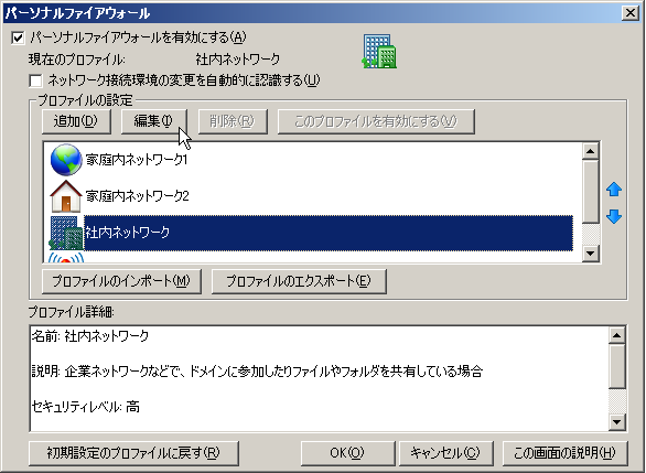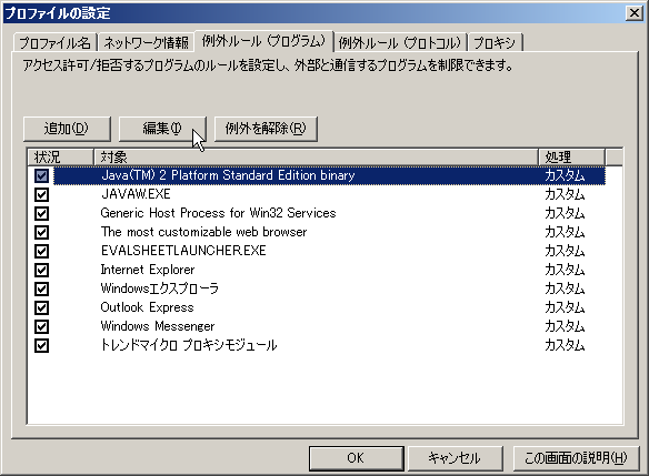 教員業績評価シートプログラムは EDB サーバと通信を行いますが,ファイアウォール機能等をもつセキュリティソフトを利用されている場合,サーバとの通信をブロックされてしまうことがあります. この場合,以下に示す A〜Cのいずれかの方法 で教員業績評価シートプログラムの通信を許可していただく必要があります. |